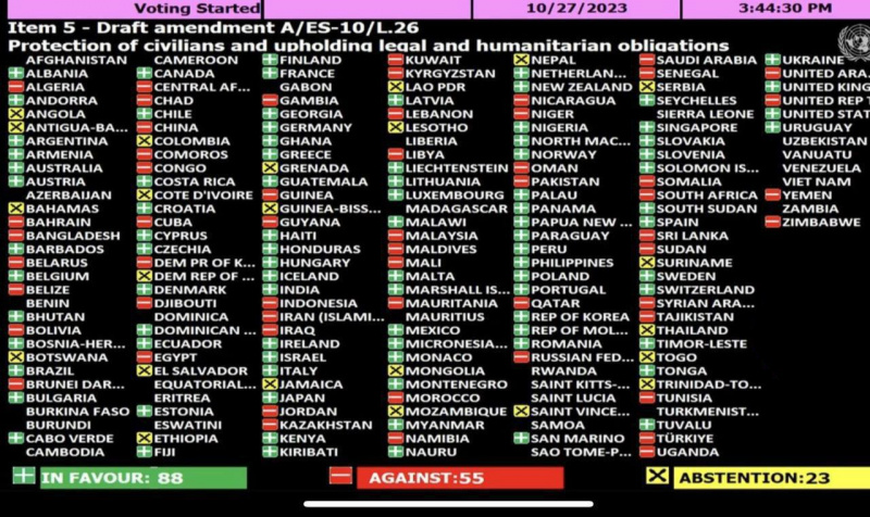 Вот страны, которые проголосовали против резолюции об осуждении массовой резни, которую устроил ХАМАС 7 октября 2023 года: