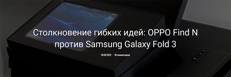В издании Deep Review очень толковая статья главного редактора издания Алексея (именно так он подписывается, без фамилии) "Столкновение гибких идей: OPPO Find N против Samsung Galaxy Fold 3".