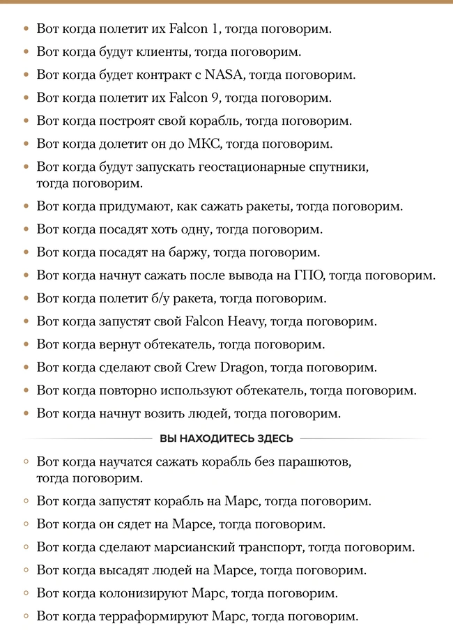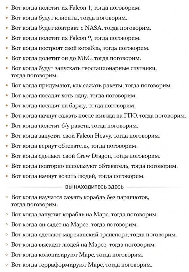 Я не собираюсь учить Маска инженерии и маркетингу, рылом не вышел) а вы, конечно, продолжайте.