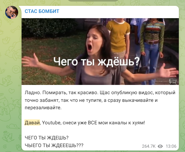 "Да, я говорил, чтоб ютуб снес мои каналы, но я же не имел в виду, чтоб ютуб снес мои каналы!"