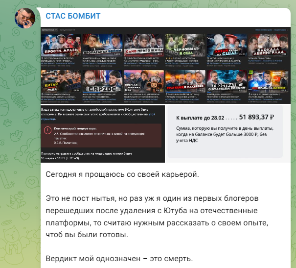 Но Стас не унывал. Подумаешь, какой-то пиндосский Youtube. Есть же такие прекрасные площадки, как Rutube, VK и Дзен. К тому же это патриотично - пользоваться отечественным.