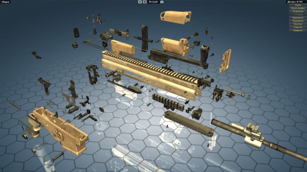 Речь об оружейном симуляторе World of Guns (Мир Оружия) от отечественных разработчиков. Он представляет собой по сути энциклопедию огнестрельного оружия (и не только), состоящую из интерактивных 3D моделей, которые можно частично или полностью разбирать/собирать; изучать функционирование, наблюдая работу механизмов в реальном или замедленном времени; останавливать время и перематывать вручную; скрывать детали; включать рентген и т.п.