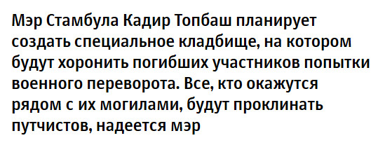 Да уж... Ждал переворота гораздо раньше. Судя по поведению Эрдогана это должно было случиться лет пять, минимум, назад. Армия в Турции со времён Ататюрка, как это ни странно звучит, была оплотом демократии. Оплотом светскости. Гарантом от скатывания в авторитарное средневековье. Что будет теперь? кто знает. Хорошего мало что, это ясно.