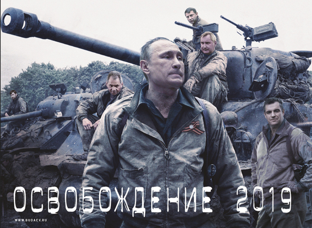 Или эдакий косплей известного трактора и поросенка - освобождают Россию от себя, сев на танк. Путь - в сторону Англии.