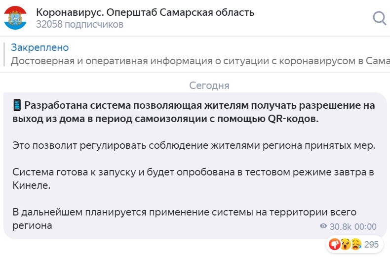 Ну? Разработана система позволяющая жителям получать разрешение на выход из дома в период самоизоляции с помощью QR-кодов.