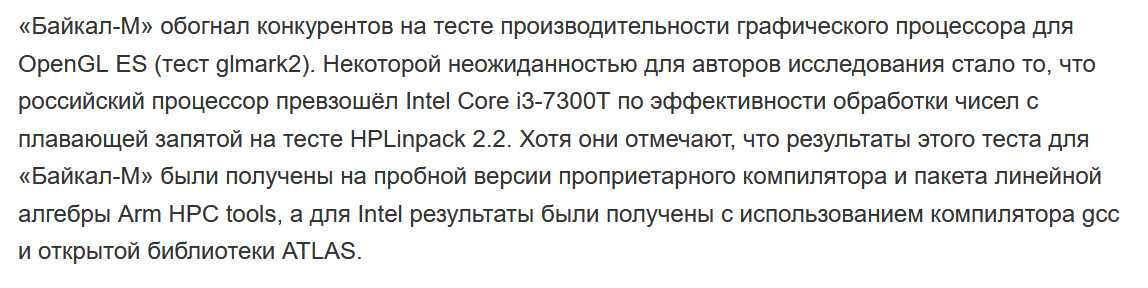 Байкал-М, который на ARM, первую партию которого в 5,000 штук отгрузили перед началом войны - между Atom E3940 (бенч 1973) и Core i3-7300T (бенч 4159), это при уровне прошлогодних мобильных процессоров за 20,000. Неплохо, неплохо!