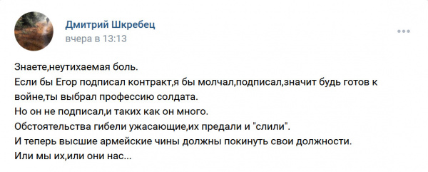 Ранее отец этого срочника писал что Украины как государства не должно существовать. В ответ перестал существовать его сын.