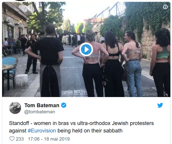 Израильская полиция 18 мая применила нестандартный способ разгона протеста, который устроили харедим (ультраортодоксальные евреи). Правоохранители попросили четырех женщин оголить верхнюю часть тела.