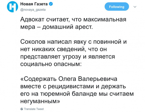 "Налицо смягчающие обстоятельства - это вся та научная деятельность, которой Соколов занимался до недавнего момента. Он внес существенный вклад в развитие отечественной истории", - заявил адвокат. (Отсюда.)