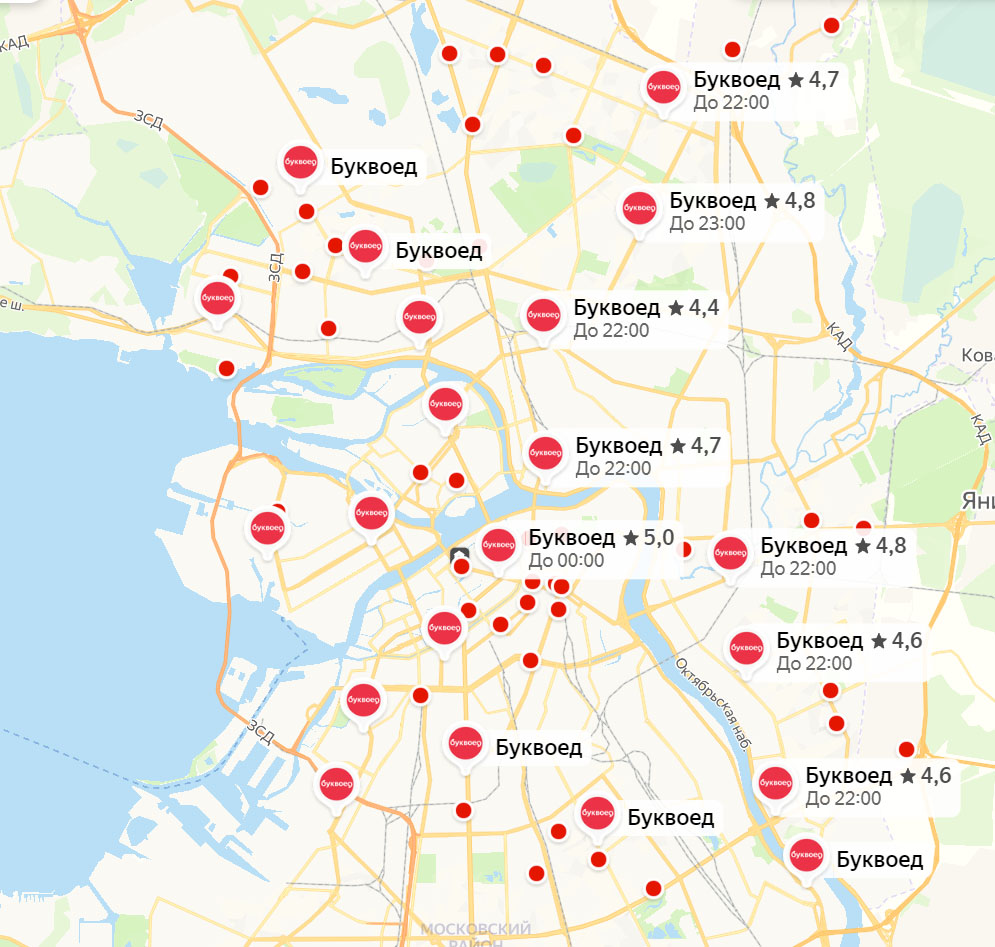 но даже при этом в Питере например только Буквоедов до хрена......