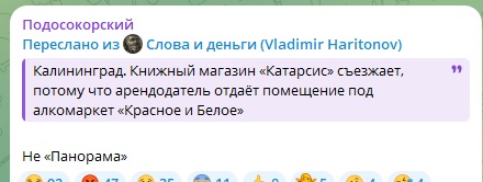 В соседнем доме два крупных алкомаркета, и три пивных точки. Дом конечно большой, но ять, на пять магазинов с алкоголем нет ни одного книжного!