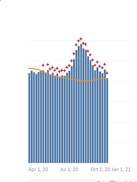 У нас в Швейцарии график уровня смертей уже поравнялся с весенним. 8 апреля был пик 62 смерти за день, и 2 ноября столько же. Наверное, в ближайшие дни стоит ожидать ещё более высокие цифры.