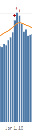 Всплеск смертости от гриппа 2018 года внизу на графике.
