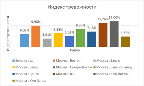 Ну и, наверное, москвичам будет полезно посмотреть статистику по районам Москвы так называемого "индекса тревожности".
