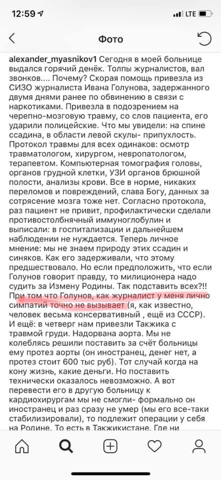 Он же пишет , что никогда не слышал о нем ( о Голунове?), и пишет же, что Голунов, как журналист у него симпатий не вызывает. Так слышал или нет?