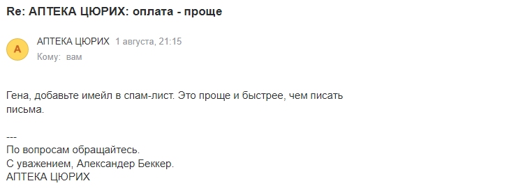 То есть служба поддержки мне сообщила, что остановить спам в мой адрес они не могут, что-то сделать с этим не могут и порекомендовали отправить почтовый ящик Озона в спам. Это гениально!