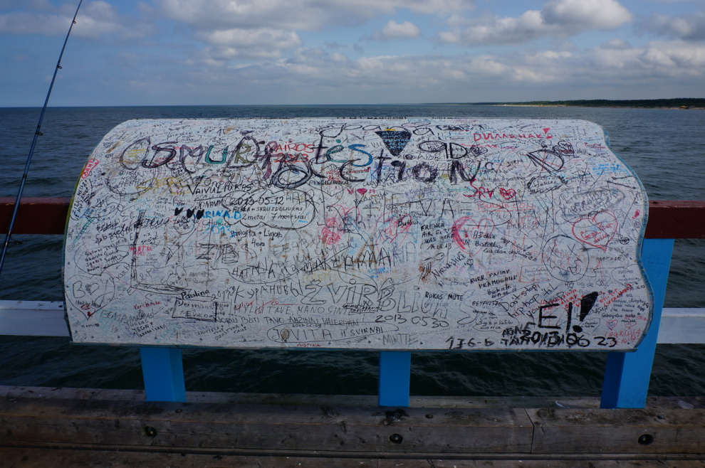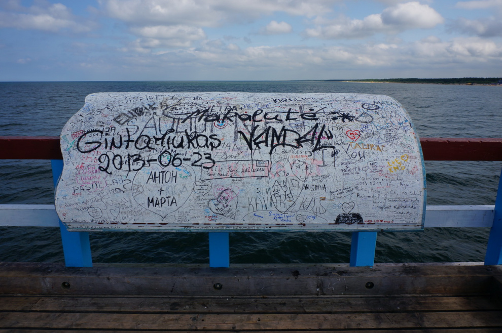 В конце пирса - две белых пластины, на которых отдыхающие традиционно пишут всякие глупости.
