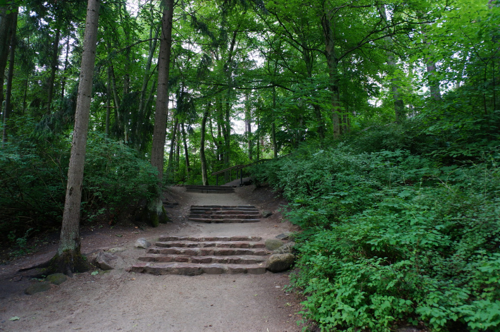 По ступенькам можно подняться на холм, чтобы убедиться в отсутствии там какого-то вида - вокруг сплошные деревья.