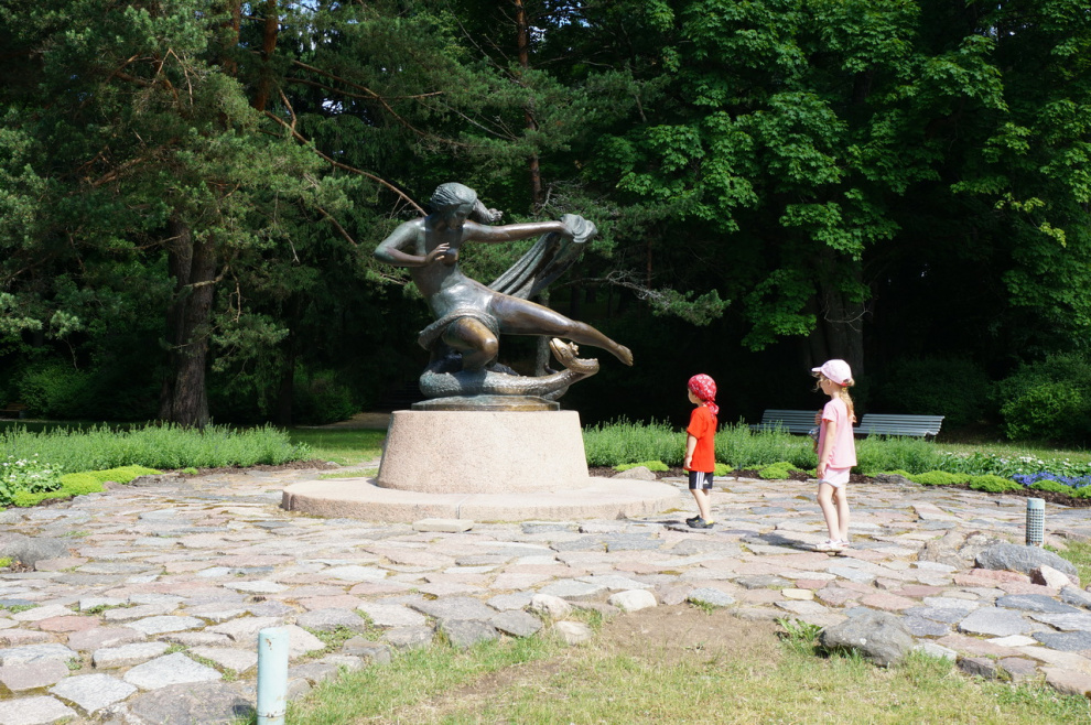 Памятник еще одной народной героине: она полюбила то ли ужа, то ли угря и вышла за него замуж. Честное слово! Скульптор изобразил начало первой брачной ночи влюбленной пары.