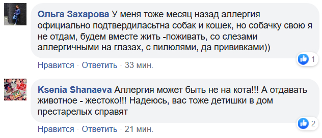 Они к сожалению, или к счастью, не знают, что такое аллергия. И видимо не очень хорошо понимают, что такое отдать своё любимое животное. Не игрушку ми-ми-ми, а друга, с которым пуд соли съел.