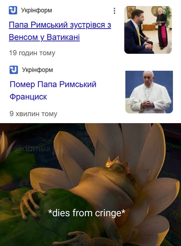 Попытался вспомнить, что же такого хорошего сделал нынешний папа. Но вспомнил только, как папа общался с молодыми украинцами, как он призывал Украину сдаться, как он во время войны называл российскую молодежь "наследниками великой России, страны большой культуры и большой человечности", и как он отмечал 860-летие со дня рождения Чингисхана, который "признавал выдающиеся качества захваченных им народов".