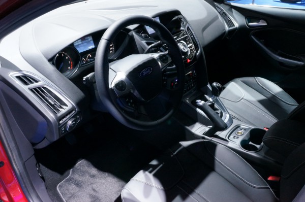 Ну и возвращаемся к автосалону. Последняя модель - пользующийся на выставке повышенным вниманием "заряженный" Ford Focus ST. От обычного "Фокуса" отличается решеткой радиатора как у Fusion и Mondeo, другим обвесом и задним спойлером. Два выхлопных патрубка расположены сзади по центру. В салоне - новые спортивные кресла и карбоновые элементы отделки.