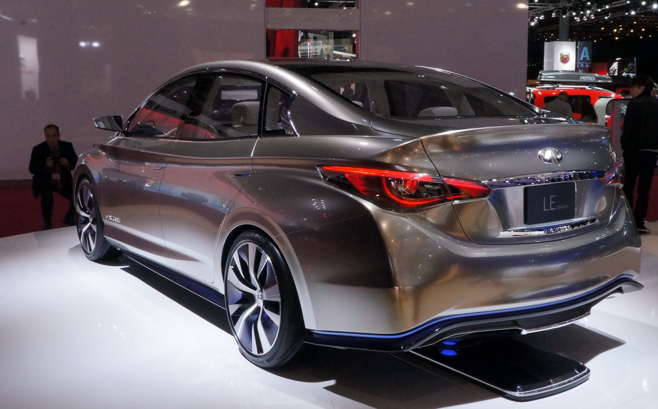 Стенд Infiniti. Главная новинка - концепт электрокара Infiniti LE Concept. В Infiniti решили доказать, что электромобиль тоже может быть хорошим бизнес-классом - и вот этот красавец!