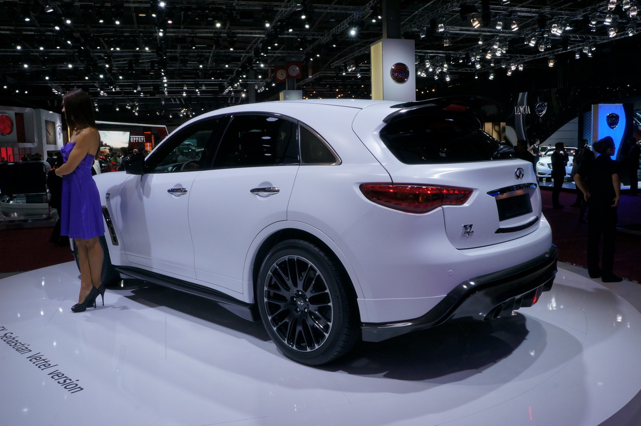 А это совершенно эксклюзивная машинка - кроссовер Infiniti FX Vettel Edition, созданный при участии двукратного чемпиона "Formula 1" Себастьяна Феттеля.