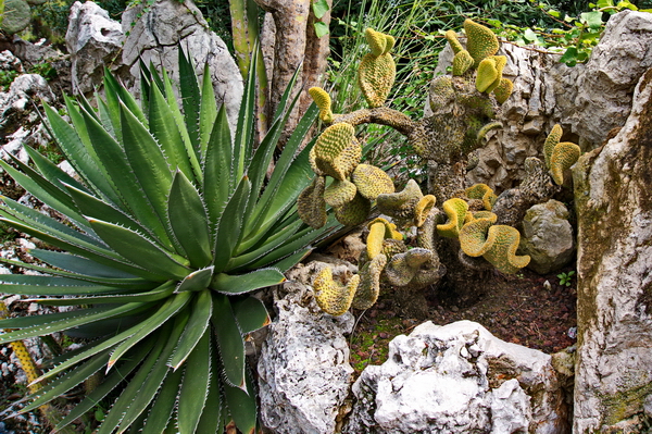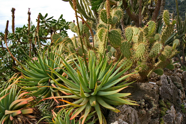 Вообще он называется "Экзотический парк Монако", однако его почти все называют парком кактусов. Создавать его начали как раз примерно сто лет назад: на крутой скале стали разводить кактусы, привезенные сюда со всех концов света. Некоторым кактусам здесь уже действительно исполнилось сто лет, и деньрожденные кактусовые празднества по этому поводу сотрясают парк иногда и каждую неделю.