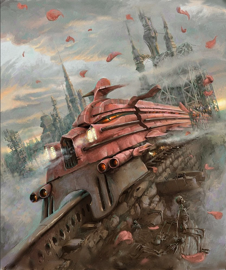 Блейн словно парил над высокой платформой вытянутым, обтекаемым силуэтом в форме пули. Казалось, он сделан из плоти, а не из металла. Поверхность его была безупречно гладкой, безо всяких зазоров и трещин, и лишь в одном месте ее прорезало отверстие — треугольное окно в головной части, снабженное огромным «дворником». Эдди знал, что точно такое же есть и на другой стороне, так что, если смотреть на Блейна спереди, впечатление будет такое, что у поезда есть лицо, как у Чарли Чу-чу. А «дворники», наверное, будут похожи на веки над хитро прищуренными глазами.