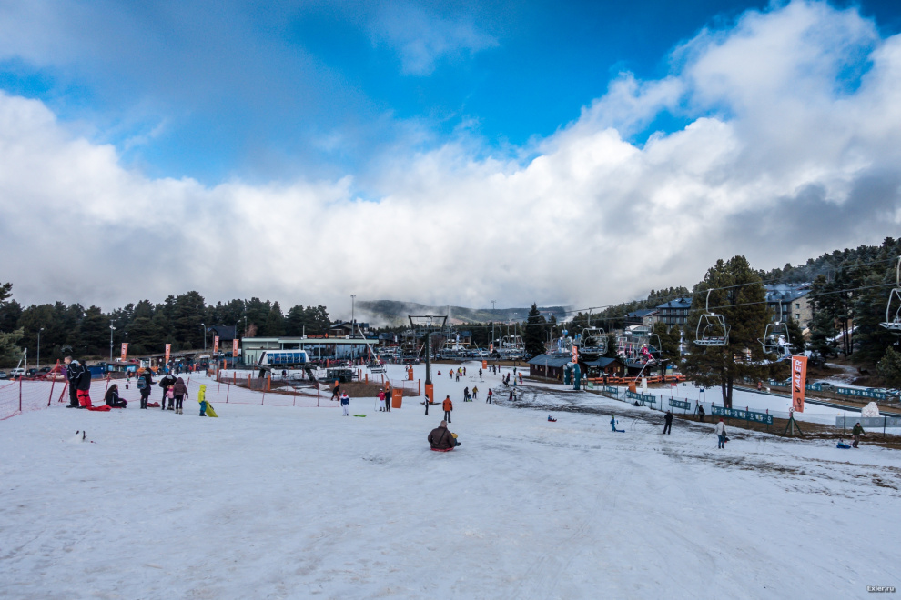 Приехали, бросили вещи, поехали сразу на горки. В La Molina есть несколько станций с подъемниками. Вот эта - станция с отелями, горнолыжной школой, подъемником для начинающих и отдельным закутком для санок.