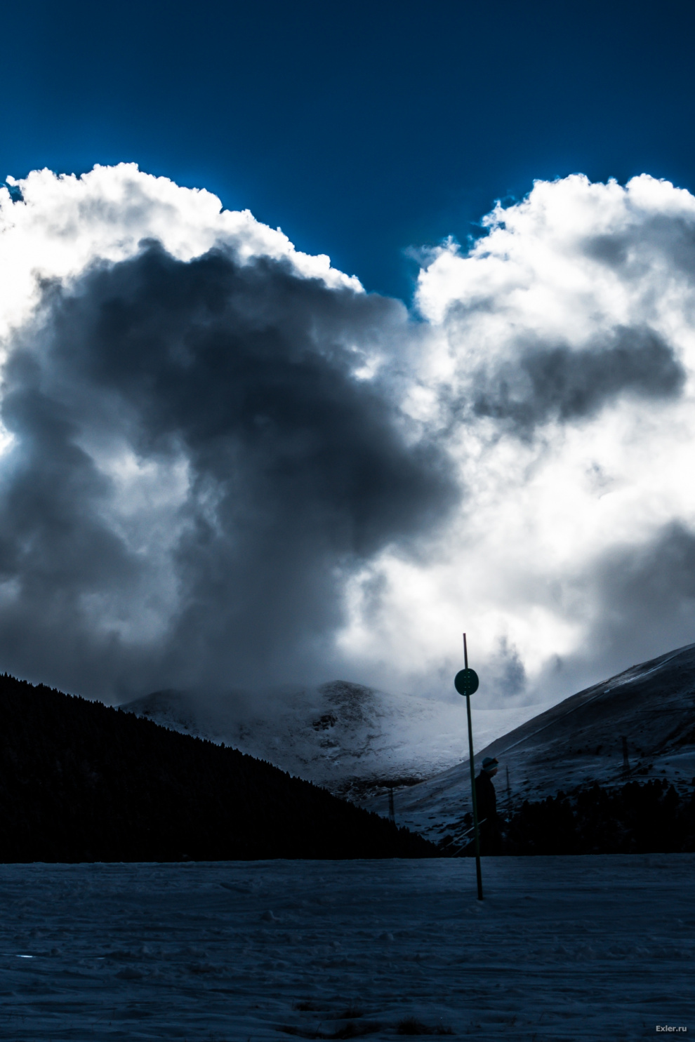 Когда мы приехали, над соседними горами висело облако, так что обстановка поначалу была мрачноватой.