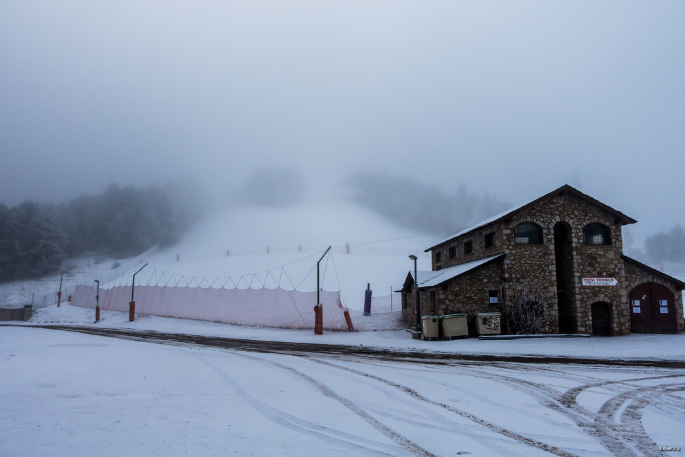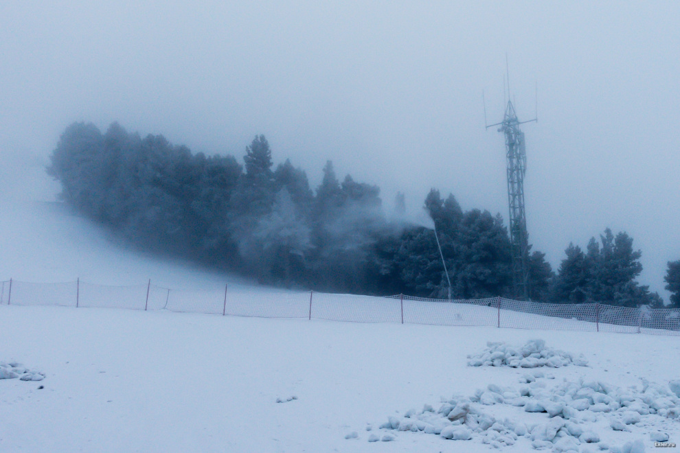 И там, несмотря на снежную погоду, работали установки с искусственным снегом. Зачем - непонятно совершенно.