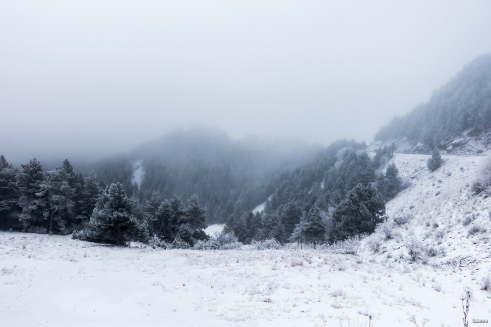 Когда юный Экслер накатался на санках, мы сели в машину и поехали на следующую базу: там обещали канатную дорогу с закрытыми кабинками, где можно забраться на 2500 метров и вылезать фотографировать. Приехали - ан фиг нам: канатка закрыта на реконструкцию. А я так надеялся.