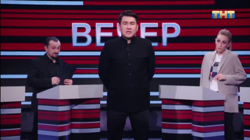 «Однажды в России» — пародийное шоу, которое показывают на ТНТ и в онлайн-кинотеатре Premier. Создатели подчеркивают, что там нет цензуры: они шутят над телепропагандистами и снимают скетчи об Алексее Навальном. 21 февраля вышел 17-й эпизод седьмого сезона шоу, в котором комик Азамат Мусагалиев пародирует Владимира Соловьева; а еще в скетче появляются пародии на Дмитрия Киселева, Ольгу Скабееву и Артема Шейнина. Через несколько дней с ютьюба удалили скетч о пропагандистах, а из онлайн-кинотеатра Premier — весь выпуск целиком. (Отсюда.)