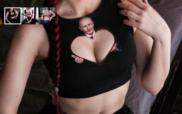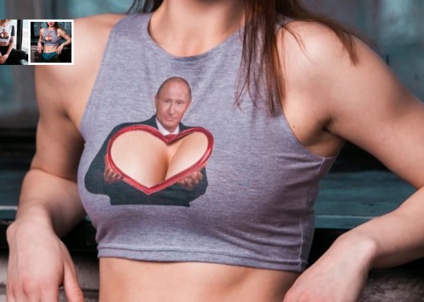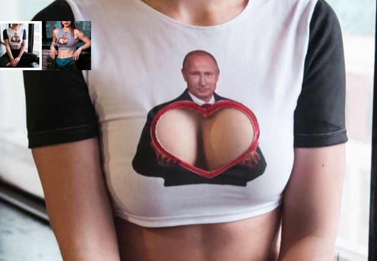 Дизайнеры проекта «Сеть» выпустили коллекцию женских футболок с изображением Президента. Изюминка коллекции в серии фигурных вырезов, создающих необычное сочетание женских форм с обликом Владимира Путина.