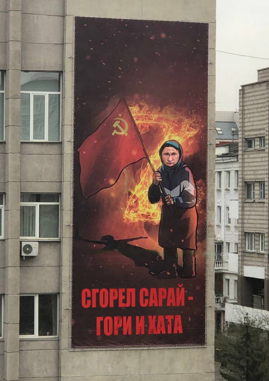 "Статую бабушки с флагом Советского Союза, которую накануне установили в Белгороде, пришлось убрать. Фигура подверглась вандализму и теперь власти ищут для нее место с ограниченным доступом."