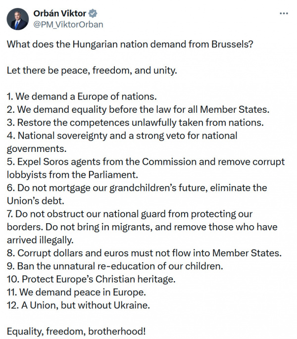 Про коррумпированные доллары и евро мне особенно понравилось. В устах купленного Путиным со всеми потрохами и всем своим говном Орбана, который, кроме всего прочего, занимается отмазыванием от европейских санкций путинских олигархов, это звучит особенно комично.