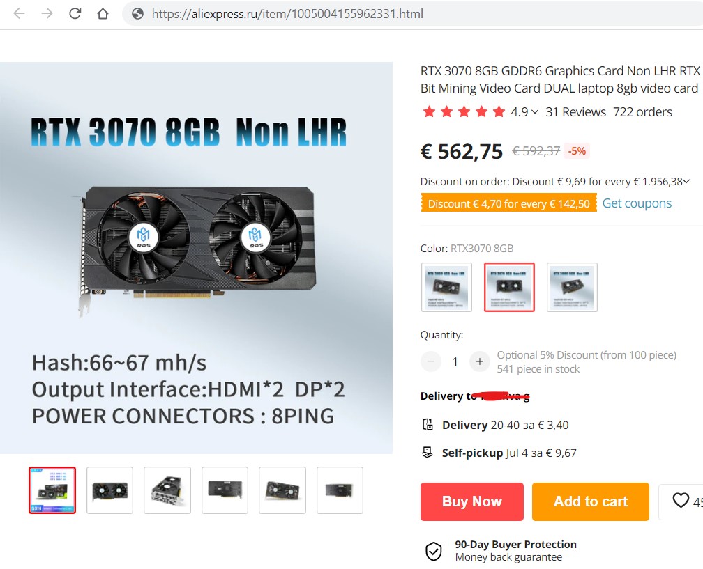Сейчас RTX 3070 на Али стоит €560, т.е. всего на €10 дороже 1070 из поста?
