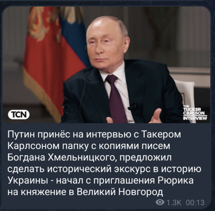 А интервью полезное - Карлсон подчеркнул теперешнюю роль путина в мировой политике, как "Нового Гитлера".