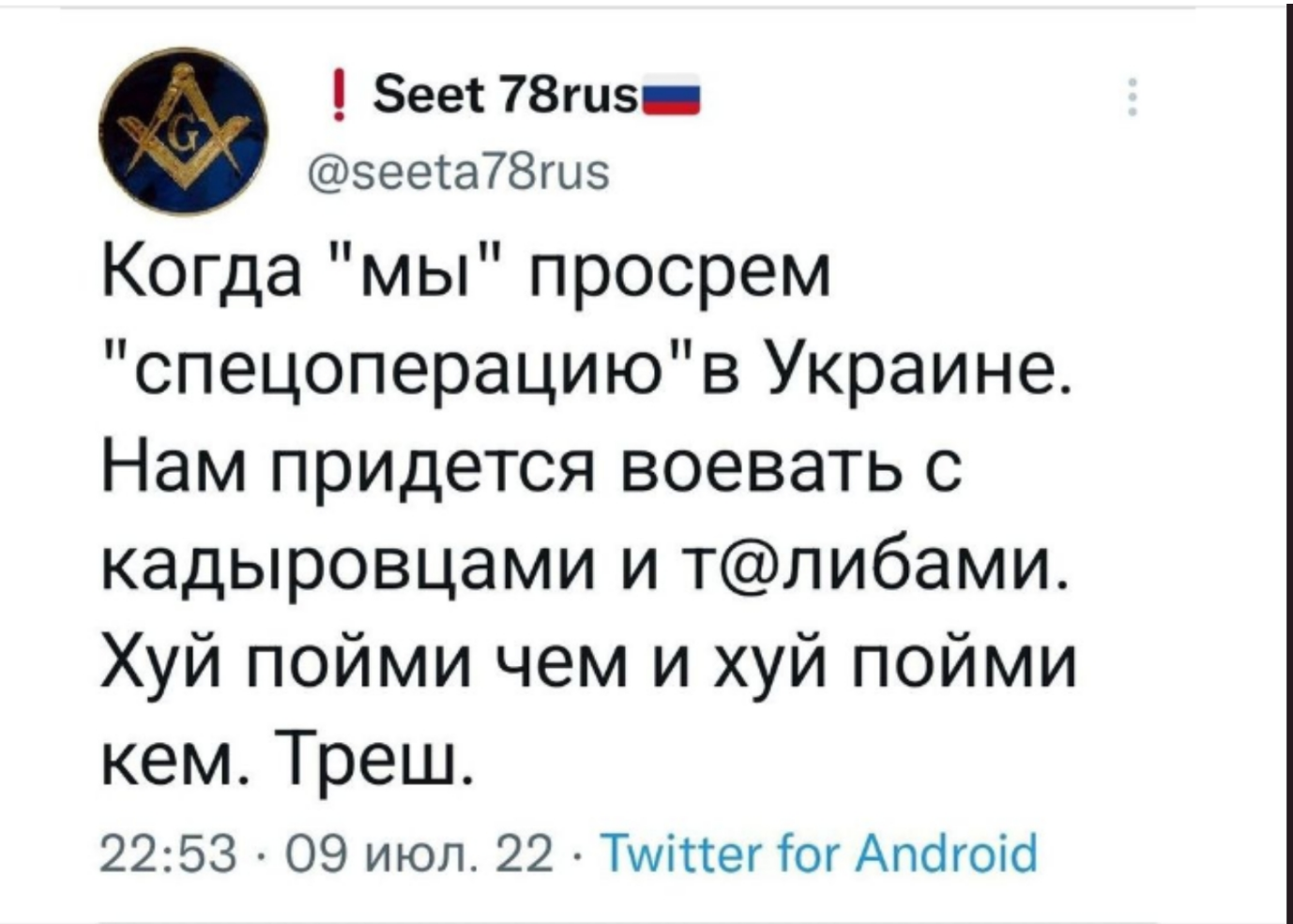 А сами русские продолжают бояться и, при этом, надеются на понимание. Поразительно убогая и дегенеративная позиция.