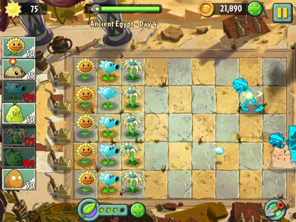 Что НЕ понравилось. Монетки теперь можно тратить только на специальные атаки, которые реально помогают, но и убивают интерес к игре. Зачем продумывать последовательность построек и структуру обороны (да, я и в Старкрафте обожаю защиту терранов), если можно купить за 1200 монеток свайп-атаку и просто пальцем повыкидывать всех зомбаков с экрана. Да, еще можно за 1000 купить удобрения, которые ЗНАЧИТЕЛЬНО усиляют атаку выбранного растения, но если сравнивать эффективность со спецатаками - никакого сравнения.