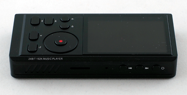 Вот сам плеер. Формы вполне традиционной, но с управлением китайцы что-то намудрили. Особенно порадовало вот это колесико вокруг красной кнопки (это, кстати, кнопка Play/Stop), которое вовсе не управляющее колесико, а архитектурное украшение.