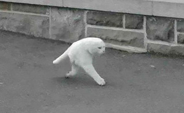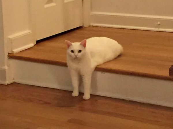 Это "жертва панорамной съемки" - кадры делались по очереди, кошка шла по своим делам, а при склейке получился такой монстр.
