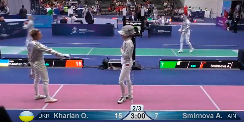 This extraordinary decision came following an incident involving Kharlan, who conceded the penalty against her was correct after refusing to shake hands with an AIN* opponent. The event occurred at the conclusion of her elimination bout in women’s individual sabre on July 27.
