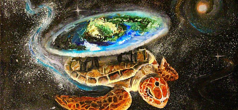 Интересно, что эта теория не вступает в когнитивный диссонанс с его же утверждением, что Земля плоская. А это показатель величайшей квалификации в области двоемыслия.