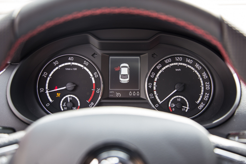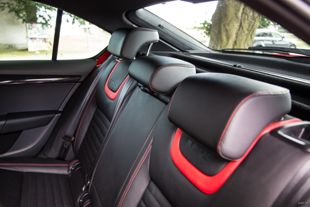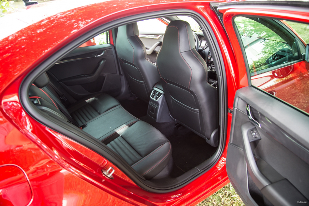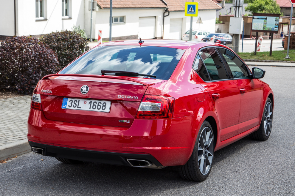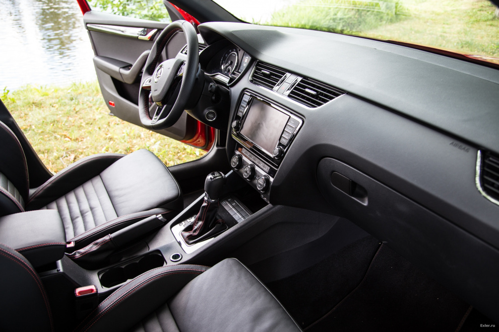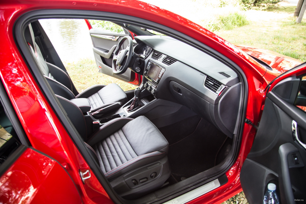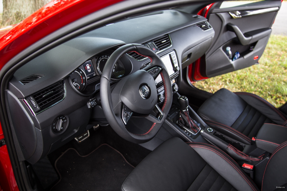 А впечатление она произвела просто отличное, уж на что я не особый фанат спортивных вариантов. Но тут как раз все дело в том, что это, с одной стороны, классический комфортный седан Octavia (вообще это хэтчбек, там багажник вместе с задним стеклом поднимается), по дизайну подтюнингованный под спортивный стиль, но при этом - машина имеет очень мощный движок, соответствующее управление и модифицированную подвеску.