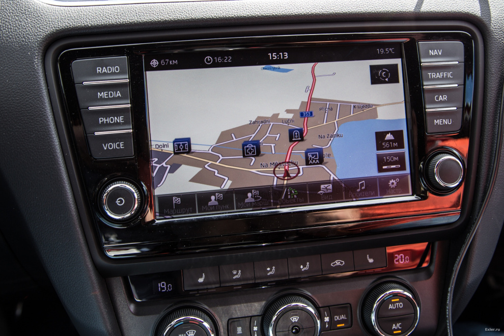 Максимально продвинутая бортовая система: радио, медиа, телефон, голосовое управление, навигация, информация о пробках и проблемах на дороге, автомобильный компьютер, меню настроек.