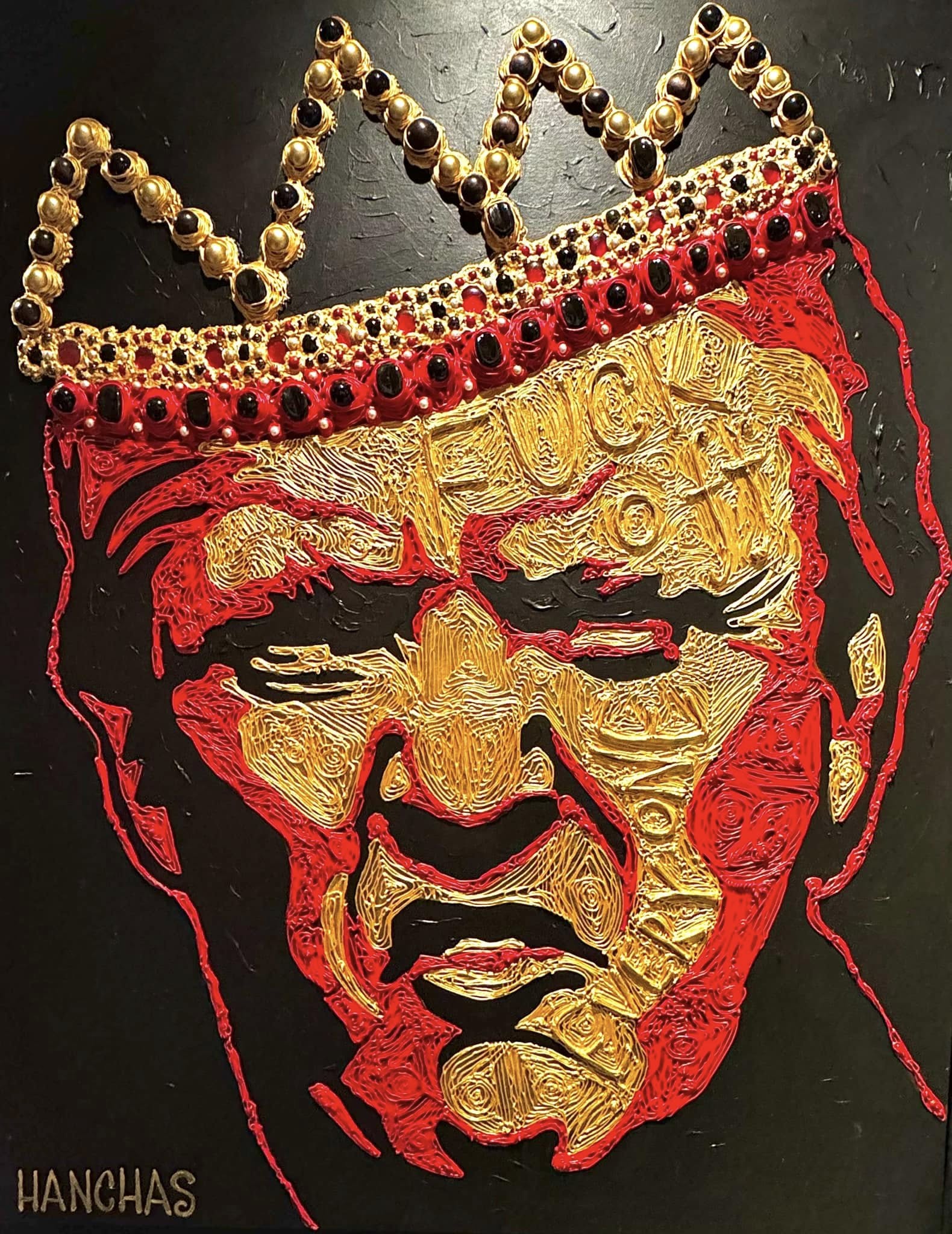 Журналистка Анна Монгайт обнаружила, что Сафронов в 2017 и 2019 годах Трампа уже малевал. Не в виде Цезаря или Александра Македонского, что странно, но мазня вполне себе тошнотворная. Впрочем, Трампу наверняка тоже понравилось.