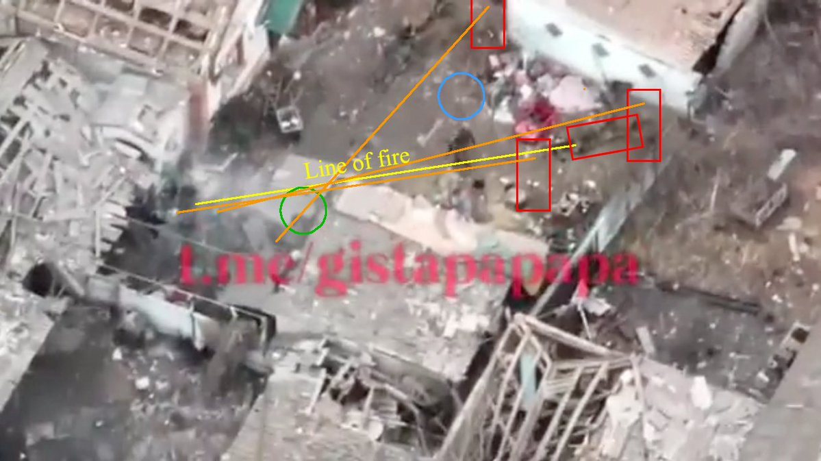 Остальные украинские бойцы, вроде как, пролопушили автоматчика, но, кмк, это мало что меняет, поскольку ПКМ в любом случае бы бил очередью снизу вверх вдоль ряда лежащих, так что им в любом случае всем хана. Вывод, на солько я понял: в смерти россиян виноват "сопротивленец", украинцы черезчур расслабились, поэтому тоже пострадали. Если бы не расслабились результат для россиян бы не изменился.